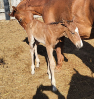 Nice bay colt born 5-15-2025. Out of Snazzy Pep Blanton and by SJQC Rowdy Blanton. Owned by Roger and Jo. Price: Sale pending
