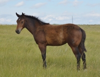 A cute bay filly by SHS Hesa Wily. She is forever running & posing for pictures. Born 5-6-13